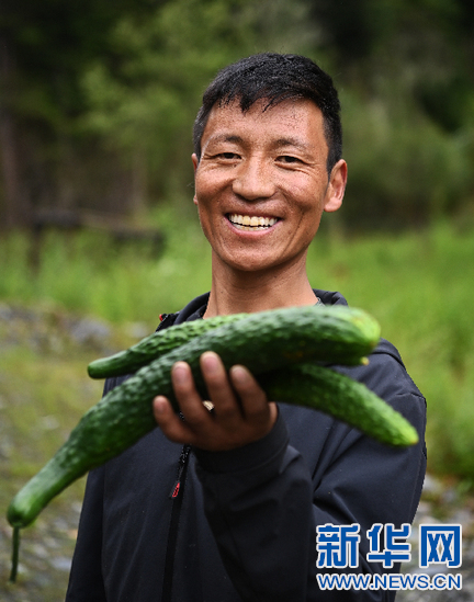 7月30日,當?shù)厝罕娬故敬笈锢锊烧狞S瓜,這些蔬菜將通過供銷社銷往各地。新華社記者 普布扎西 攝
