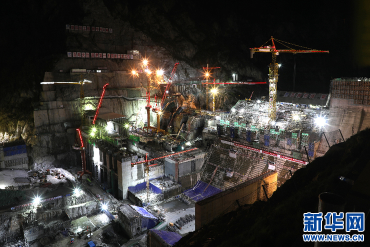 大壩施工現(xiàn)場夜景(新華社發(fā) 廖江平 攝)