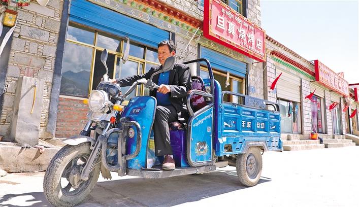 米瑪騎著三輪車(chē)為客人送飯。記者 劉斯宇 格桑倫珠 攝