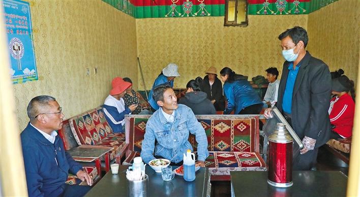 起床,打掃衛(wèi)生,準(zhǔn)備食材,這是堆龍德慶區(qū)羊達(dá)街道通嘎社區(qū)建檔立卡貧困戶旦增卓嘎每天的日常生活。今天是他們?yōu)樽约业臒镜瓴少?gòu)食材的日子,按照食材消耗速度,他們一周大概要去采購(gòu)兩三次。在吃完一碗熱騰騰的藏面后,旦增卓嘎的丈夫米瑪便開(kāi)著自己購(gòu)買(mǎi)的車(chē)往菜市場(chǎng)趕去,旦增卓嘎則繼續(xù)為一天的經(jīng)營(yíng)做著準(zhǔn)備。