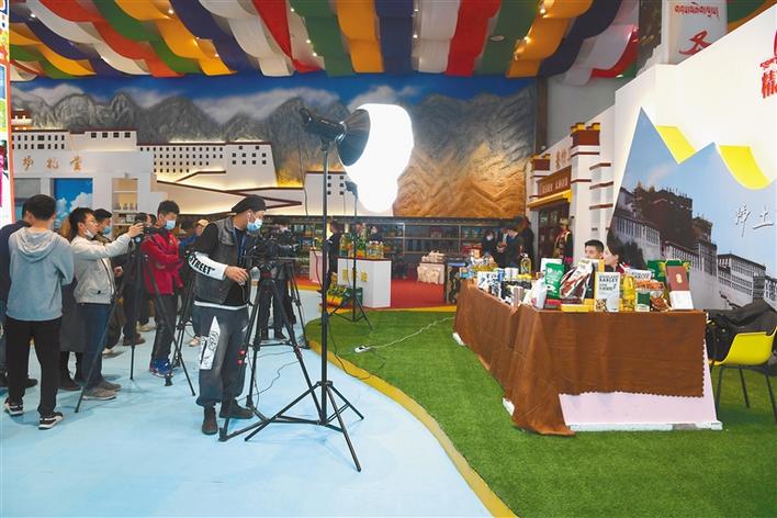 參展商家通過網絡直播介紹、銷售產品。記者 李洲 次仁平措 攝