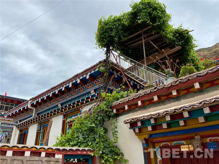 正欲轉身,忽然發(fā)現身旁門楣上鑲嵌著兩個小鐵牌,一個是黃底紅字,上面寫著“共產黨員戶”;一個是藍底白字,上面寫著“平安家庭”。毫無疑問,這家戶主是一名共產黨員。這徹底改變了之前留在腦中的農牧區(qū)共產黨員形象。百年藏寨中的黨員,在家窗明幾凈綠樹紅花葡萄架,出外精神抖擻干事創(chuàng)業(yè)群眾夸。