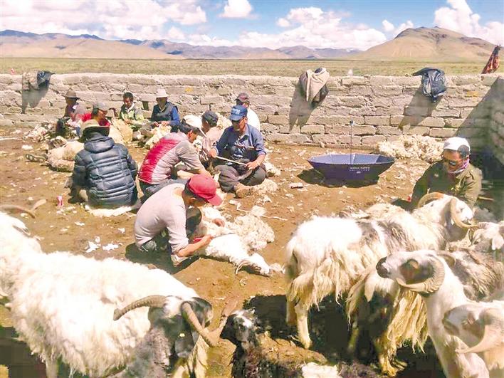 亞卡亞村養(yǎng)殖專業(yè)合作社組織群眾開(kāi)展羊毛初加工。 記者 楊小娟 攝