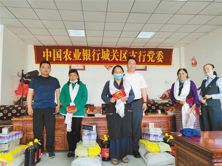 農(nóng)行城關(guān)區(qū)支行與木如居委會(huì)貧困戶開展結(jié)對幫扶,并為他們送去了慰問品和慰問金。