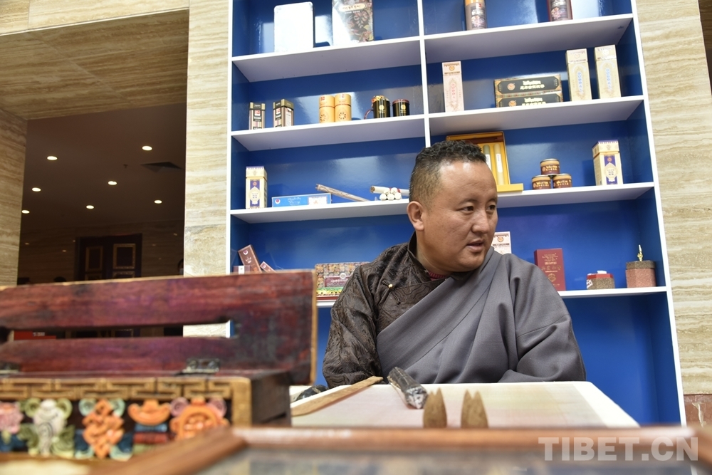 圖為非遺扶貧帶頭人、藏香制作技藝國家級(jí)非遺代表性傳承人旦增曲扎接受采訪 攝影:王媛媛