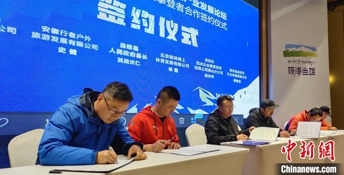圖為當(dāng)雄縣官方與30余家戶外俱樂部、文化賽事機(jī)構(gòu)和企業(yè)單位代表進(jìn)行合作簽約?!∝暽@?攝