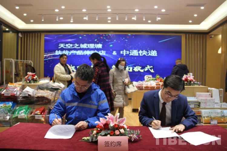 開業(yè)典禮上,四川密奇奇電商和中通快遞簽訂了戰(zhàn)略合作協(xié)議,共同推出“川西扶貧助農(nóng)”行動,解決高原農(nóng)特產(chǎn)平臺和運(yùn)輸兩大問題。(中國西藏網(wǎng) 通訊員/葉強(qiáng)平 葉任偉 文/圖)