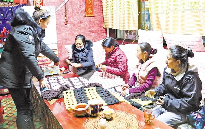 “圓夢(mèng)新居”的婦女們?cè)趯W(xué)習(xí)編織毛毯。記者 達(dá)珍 溫凱 攝