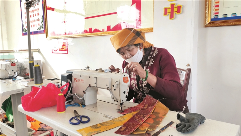 圖為在扶貧車間內(nèi),工人正在進(jìn)行縫紉。拉薩融媒記者 余洋洋攝
