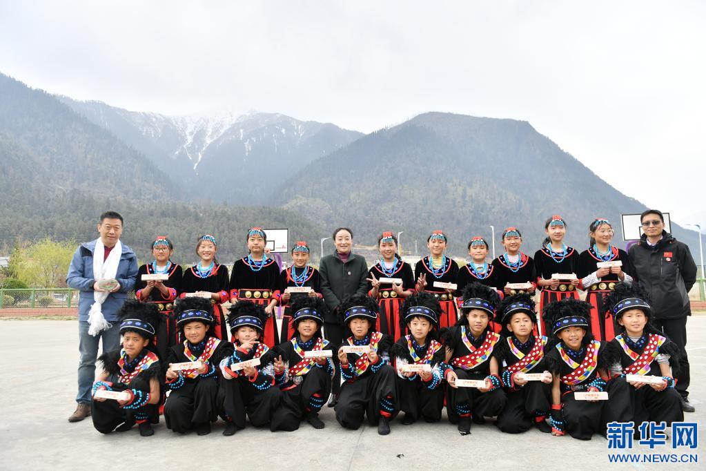 3月30日,米林縣中學(xué)學(xué)生在“U+校餐計(jì)劃”捐贈(zèng)儀式上表演節(jié)目。新華社記者 孫瑞博 攝