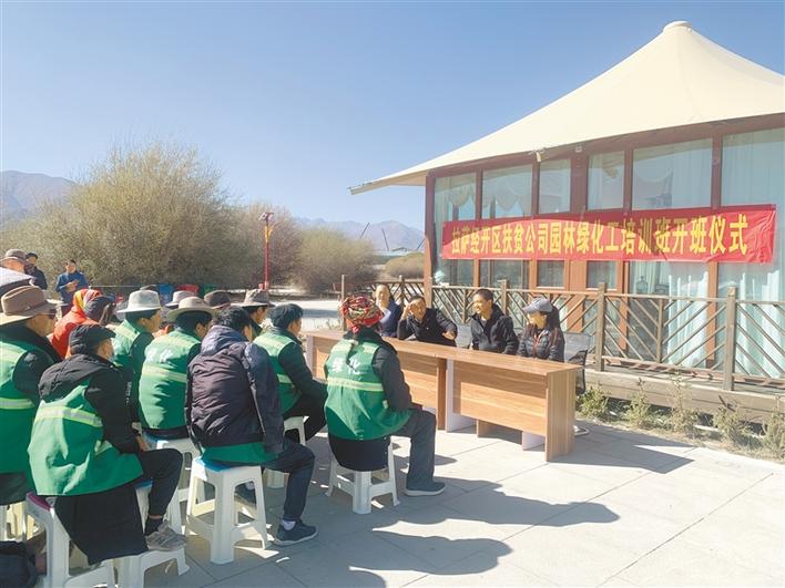 圖為拉薩經(jīng)開(kāi)區(qū)產(chǎn)業(yè)扶貧投資發(fā)展有限公司園林綠化工培訓(xùn)班開(kāi)班儀式現(xiàn)場(chǎng)。記者 劉斯宇 攝