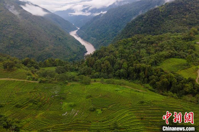 圖為西藏墨脫縣雅魯藏布江邊的茶園,如今茶葉已成為墨脫縣的特色產(chǎn)業(yè)。 江飛波 攝