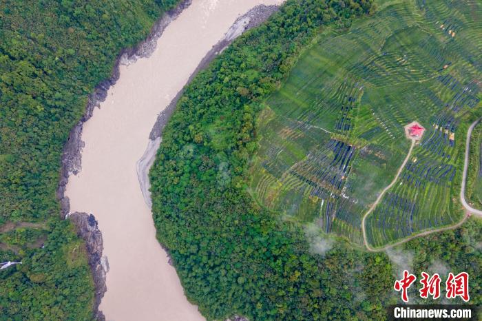 圖為5月18日航拍西藏墨脫縣的茶園?!〗w波 攝
