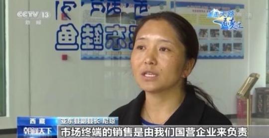亞東縣副縣長 尼瓊:市場終端的銷售由我們國營企業(yè)來負(fù)責(zé),各個養(yǎng)殖合作社就少承擔(dān)市場的推廣費用,還有一個前期的繁育養(yǎng)殖也是我們國營企業(yè)負(fù)責(zé),因為這里面技術(shù)的要求更大,前期的成本也是比較大的,所以各個合作社是管中間的商品魚的養(yǎng)殖。