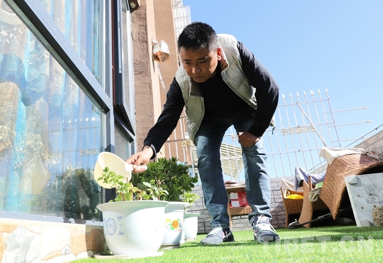 中國西藏網(wǎng)訊 每天中午下班回家后,尼瑪總要到陽臺(tái)的花盆邊擺弄一陣子。