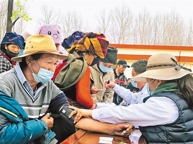 圖為西藏藏醫(yī)藥大學(xué)附屬醫(yī)院的醫(yī)護人員為林周縣村民義診。記者 央金 攝