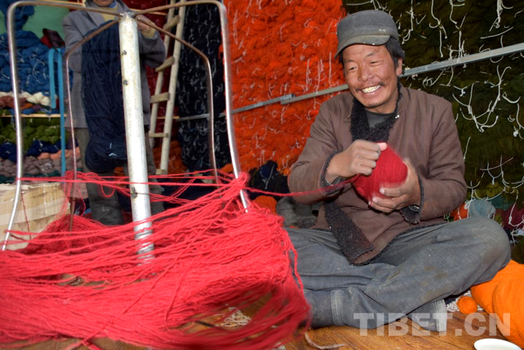 “剛到合作社每天工資160元,一個月下來就有小四千,一年收入妥妥的超3萬元?!闭f話間,巴頓也沒有歇下手中的活計。穿桿結(jié)扣,勤勞的雙手一直忙碌著,在合作社6年多,他已經(jīng)比較熟練地掌握了卡墊織法、色彩以及紋樣。如今,卡墊接活都是以承包方式,往往供不應(yīng)求,一家人住在裝修一新的藏式小院里,妻子現(xiàn)在也在參加合作社新員工培訓(xùn),四個孩子都進了公立學(xué)校讀書,享受了義務(wù)教育免費“三包”政策。