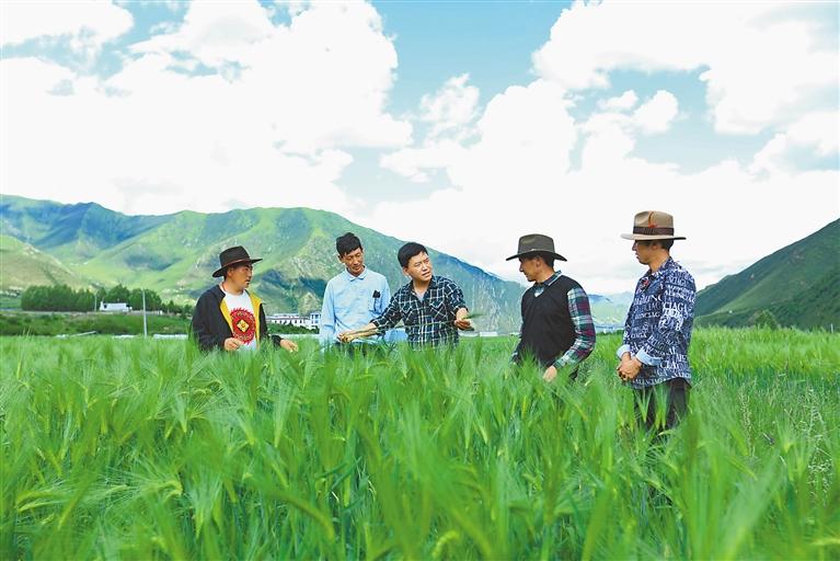 拉薩市農(nóng)業(yè)農(nóng)村局技術(shù)人員深入田間地頭為群眾講解青稞新品種——“蘇拉青2號(hào)”種植技術(shù)。[詳細(xì)]