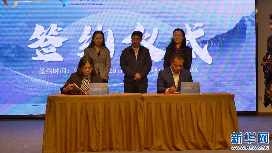 圖為活動現(xiàn)場簽約儀式 (5月20日攝)。新華網(wǎng)發(fā) 貢桑央吉(實(shí)習(xí)生)攝