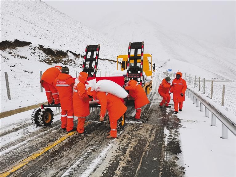 圖為拉薩市交通運輸部門組織農(nóng)村公路護路員開展除雪作業(yè)。