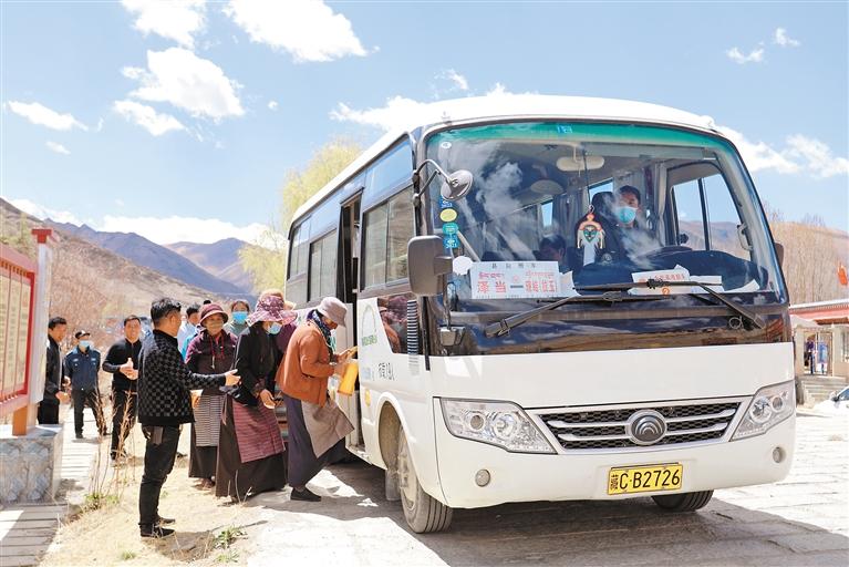 圖為山南市瓊結(jié)縣定時發(fā)車的農(nóng)村客運班車,讓群眾出行更方便更安全。