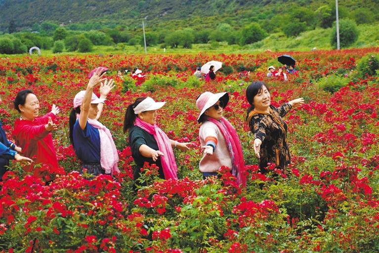 工布花谷位于林芝市巴宜區(qū)布久鄉(xiāng)卡達(dá)村,是一個(gè)融合高原花卉、藍(lán)莓種植等鄉(xiāng)村生態(tài)農(nóng)業(yè)旅游項(xiàng)目的景區(qū),不僅美化了鄉(xiāng)村,還為卡達(dá)村的農(nóng)牧民群眾提供了就近就便的工作崗位,拓寬了收入渠道。近日,花谷內(nèi)盛開的玫瑰吸引了大批市民游客及攝影愛好者前來參觀、拍照。