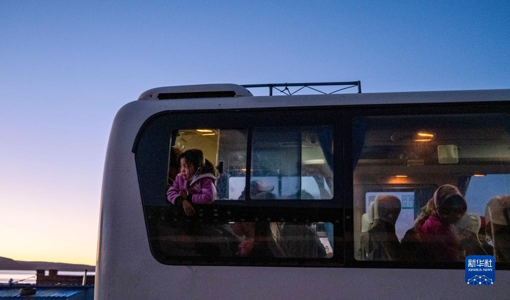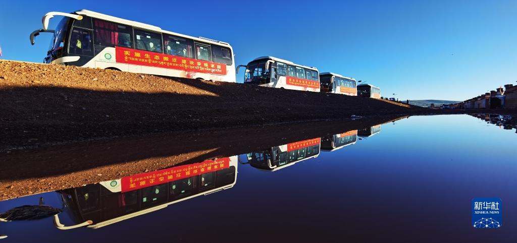 搬遷群眾搭乘大巴,準(zhǔn)備前往森布日安置點(7月19日攝)。新華社記者 孫非 攝