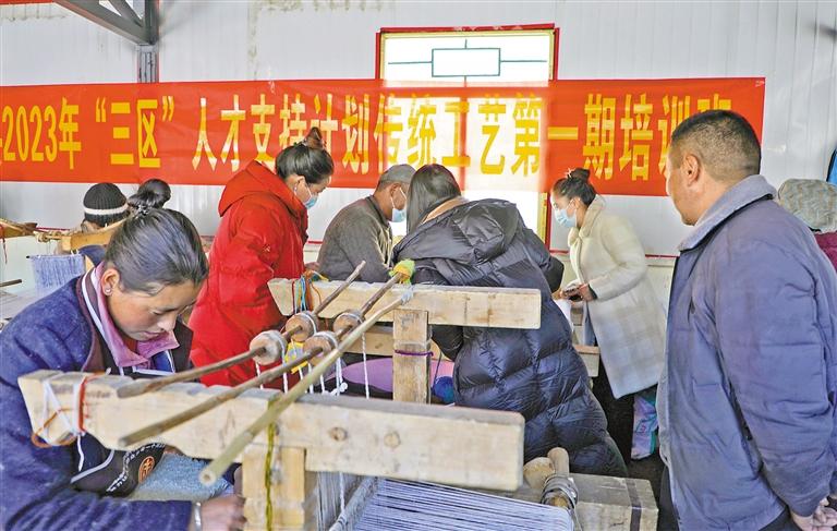 近日,山南市洛扎縣組織25名學員,采用理論與實操相結合的方式,舉辦了2023年“三區(qū)”人才支持計劃傳統(tǒng)工藝第一期培訓,現場教授學員學習卡墊織造技藝。