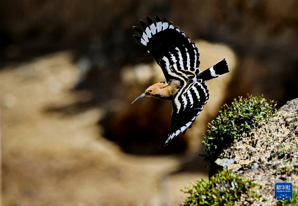 飛翔中的戴勝(6月29日攝)。新華社記者 張汝鋒 攝