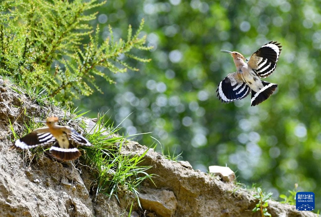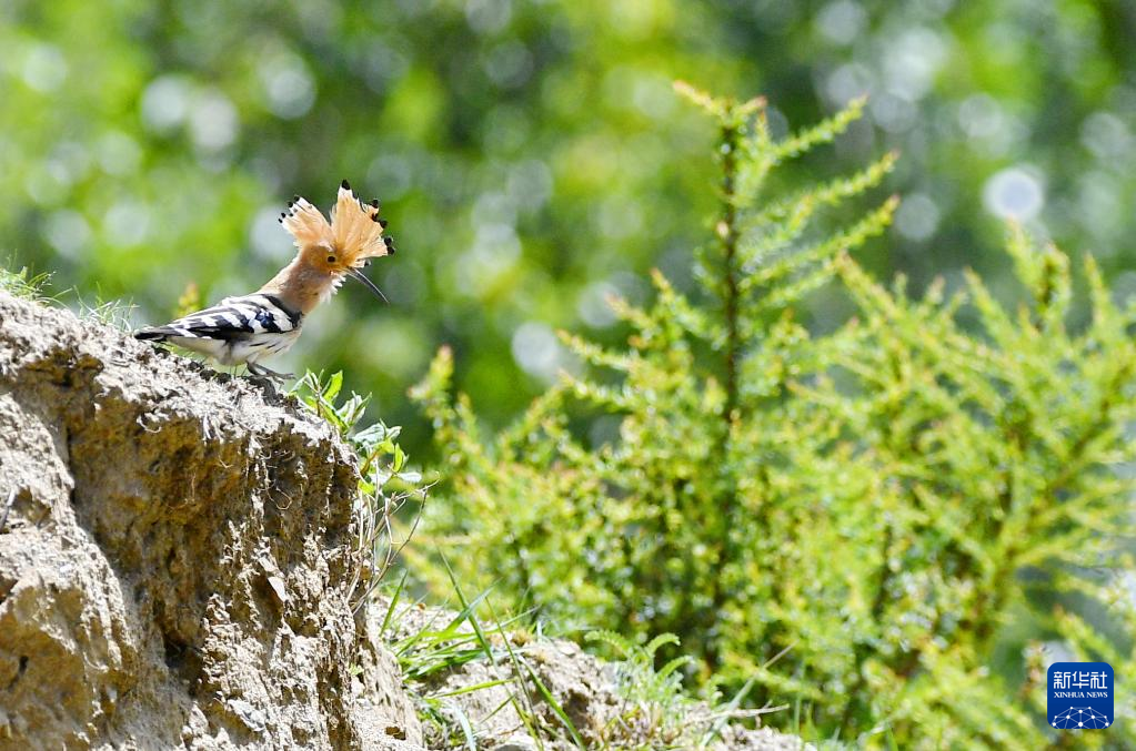 白定村周邊山坡上的戴勝(6月29日攝)。新華社記者 張汝鋒 攝