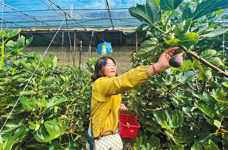 圖為市民在拉薩市達(dá)孜區(qū)純凈生態(tài)采摘園內(nèi)采摘無(wú)花果。記者 潘多 攝