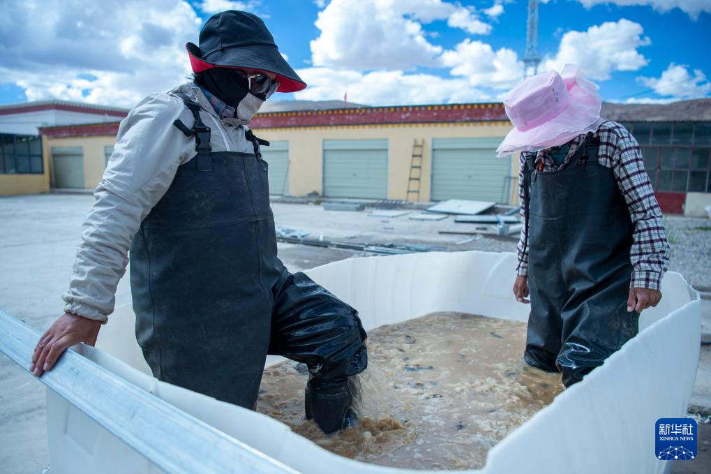 村民們在清洗羊毛(8月24日攝)。新華社發(fā)(旦增努布 攝)
