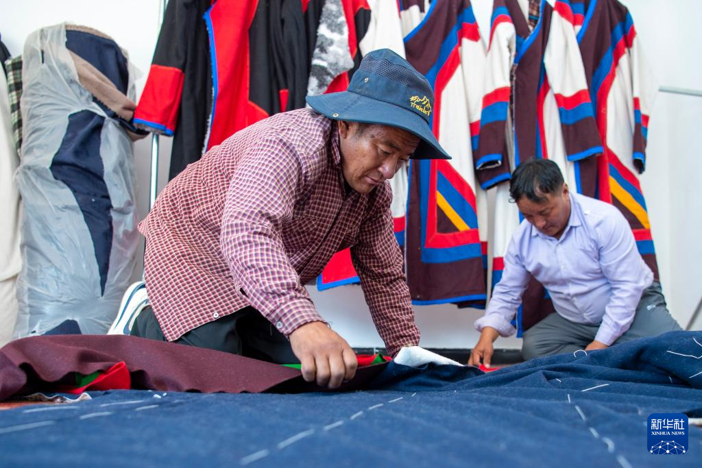 一位村民在裁剪布料(8月24日攝)。新華社發(fā)(旦增努布 攝)