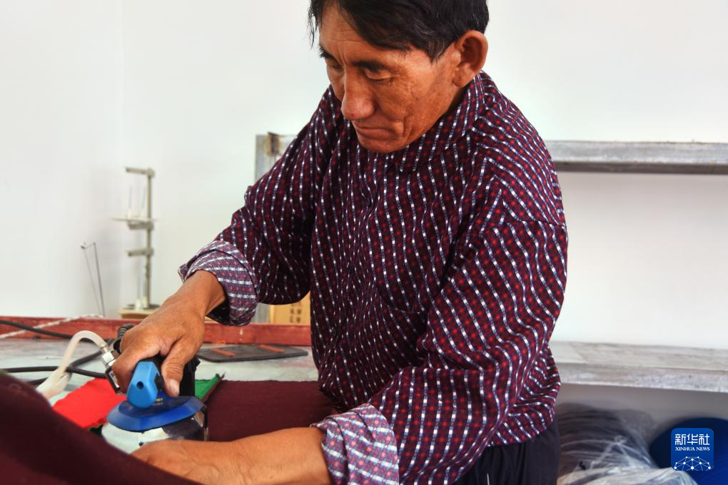 一位村民在熨燙藏袍(8月24日攝)。新華社記者 劉文博攝