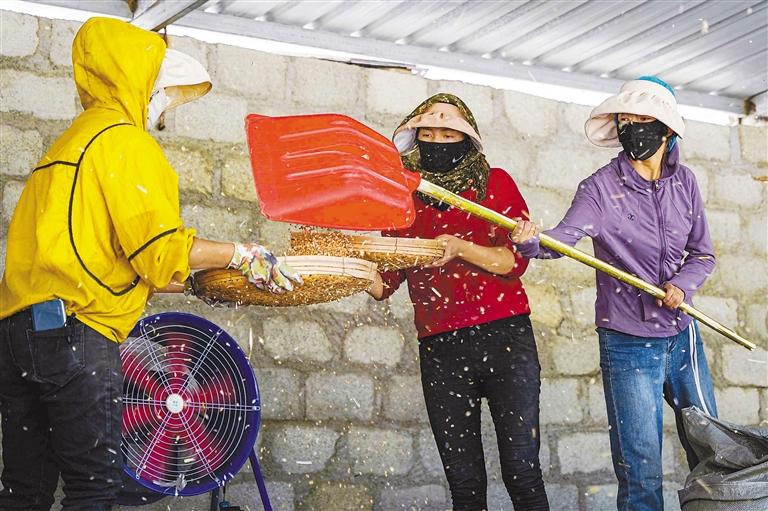 圖為村民們在揚(yáng)場。 記者 阿旺尼瑪 攝