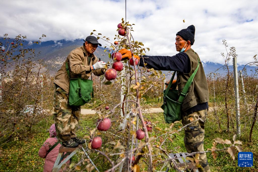 米林市羌納鄉(xiāng)西藏林芝現(xiàn)代蘋果標準化園區(qū)內(nèi),農(nóng)民在采摘蘋果(11月13日攝)。新華社記者 姜帆 攝