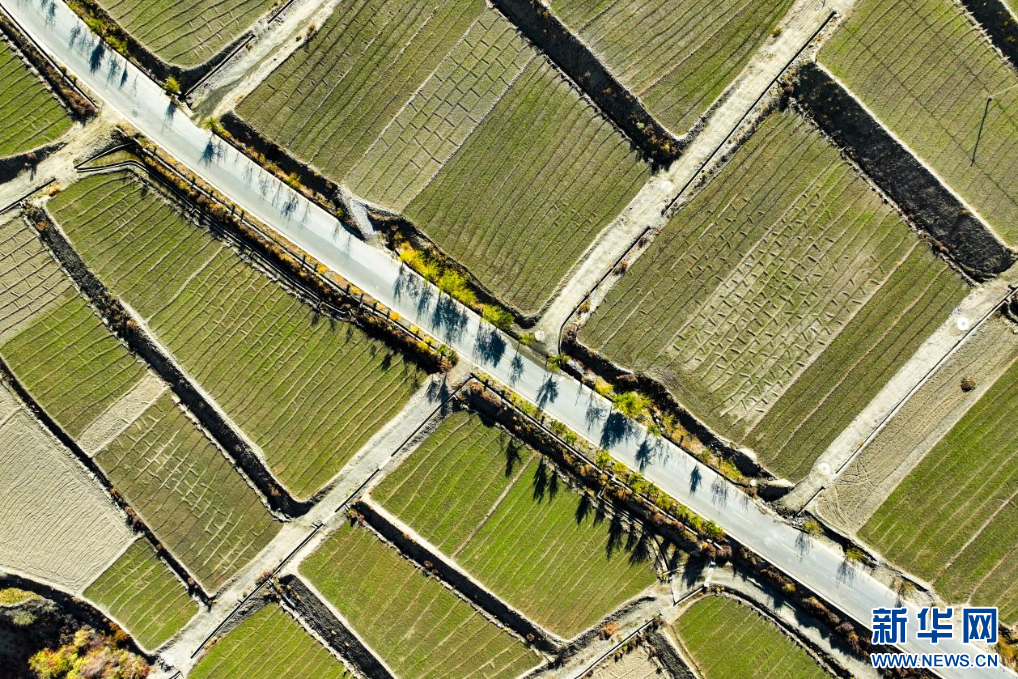 11月16日,西藏隆子縣加玉鄉(xiāng)境內(nèi)拍攝的農(nóng)田(無(wú)人機(jī)照片)。新華網(wǎng) 旦增努布 攝