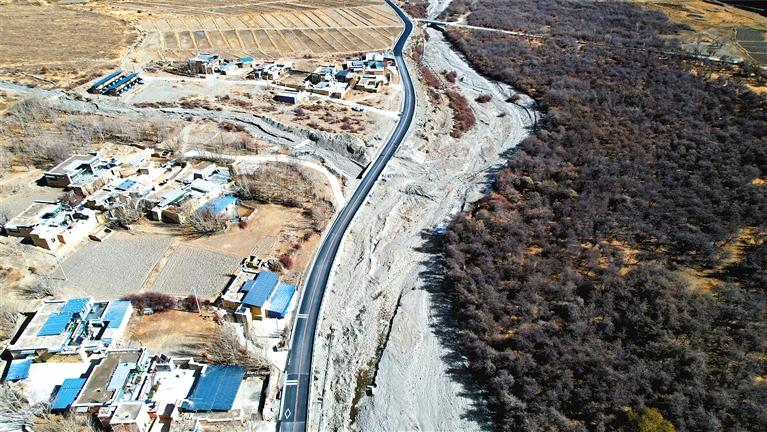 12月12日,山南市瓊結縣拉玉鄉(xiāng)鄉(xiāng)村旅游公路拓寬工程項目通車儀式在拉玉鄉(xiāng)白那村舉行。該公路長度為10.18公里,路基寬度為7.5米,屬于三級公路,總投資3500萬元。這條鄉(xiāng)村旅游公路的建成通車,不僅方便周邊村民出行,同時對開發(fā)當?shù)剜l(xiāng)村旅游資源具有重要價值。 拉玉鄉(xiāng)鄉(xiāng)村旅游公路(無人機照片)。本報記者 白瑪澤旺 攝