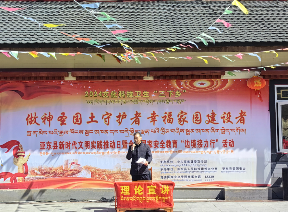 4月伊始,在“全民國(guó)家安全教育日”來臨之際,亞東縣文化科技衛(wèi)生“三下鄉(xiāng)”第三站來到了邊境村。此次活動(dòng)由亞東縣委宣傳部、亞東縣國(guó)家安全人民防線建設(shè)領(lǐng)導(dǎo)小組辦公室、亞東縣委國(guó)安辦共同舉辦,以“做神圣國(guó)土守護(hù)者、幸福家園建設(shè)者”為主題,以文藝+宣講+服務(wù)的形式,開展了系列宣傳教育活動(dòng)?;顒?dòng)首先對(duì)該村2024年第一季度邊境小康村“五星戶”進(jìn)行了頒獎(jiǎng),通過表彰活動(dòng),進(jìn)一步激發(fā)邊境群眾做神圣國(guó)土守護(hù)者、幸福家園建設(shè)者的決心和信心。