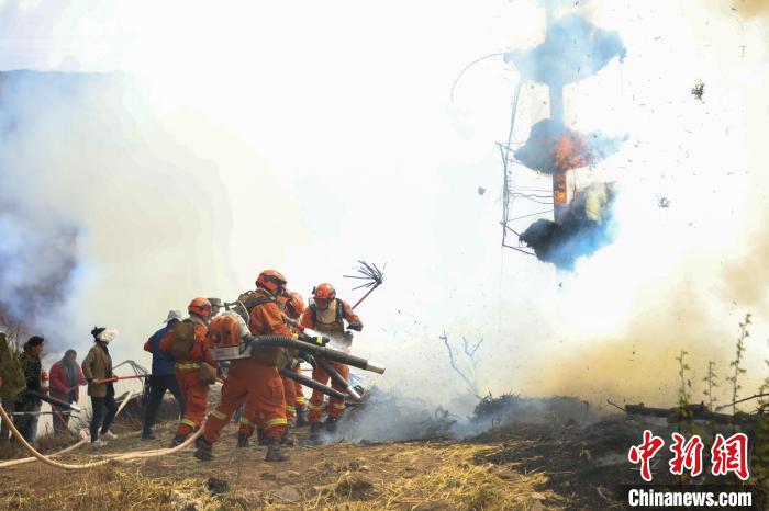 演練現(xiàn)場,森林消防進(jìn)行滅火。昌都市森林消防支隊(duì) 供圖