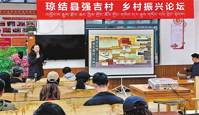 圖為瓊結(jié)縣在拉玉鄉(xiāng)強(qiáng)吉村“黨群小茶館”服務(wù)平臺(tái)舉辦鄉(xiāng)村振興論壇。記者 汪純 攝