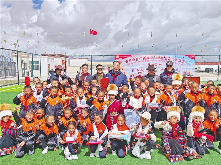 沈陽市第十批援藏工作隊員與安多縣扎仁鎮(zhèn)小學(xué)師生一起慶祝六一兒童節(jié)。