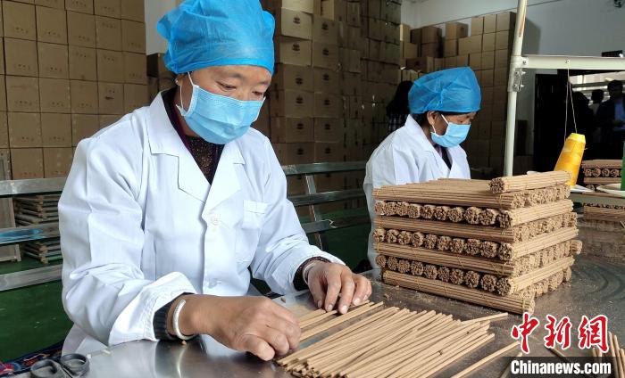 “我們農(nóng)閑時(shí)就會(huì)來這里制作藏香。”幾位埋頭工作的婦女不善言談,但她們數(shù)線香、捆藏香流程十分嫻熟,她們足不出村實(shí)現(xiàn)就業(yè)增收?! ?/p>