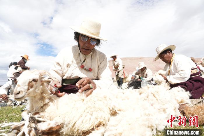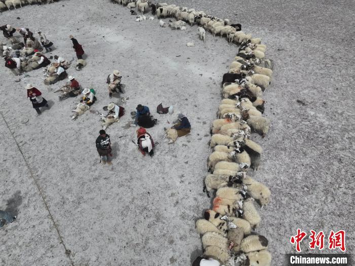 圖為阿里改則縣牧民剪羊毛現(xiàn)場(chǎng)。索朗仁青 攝
