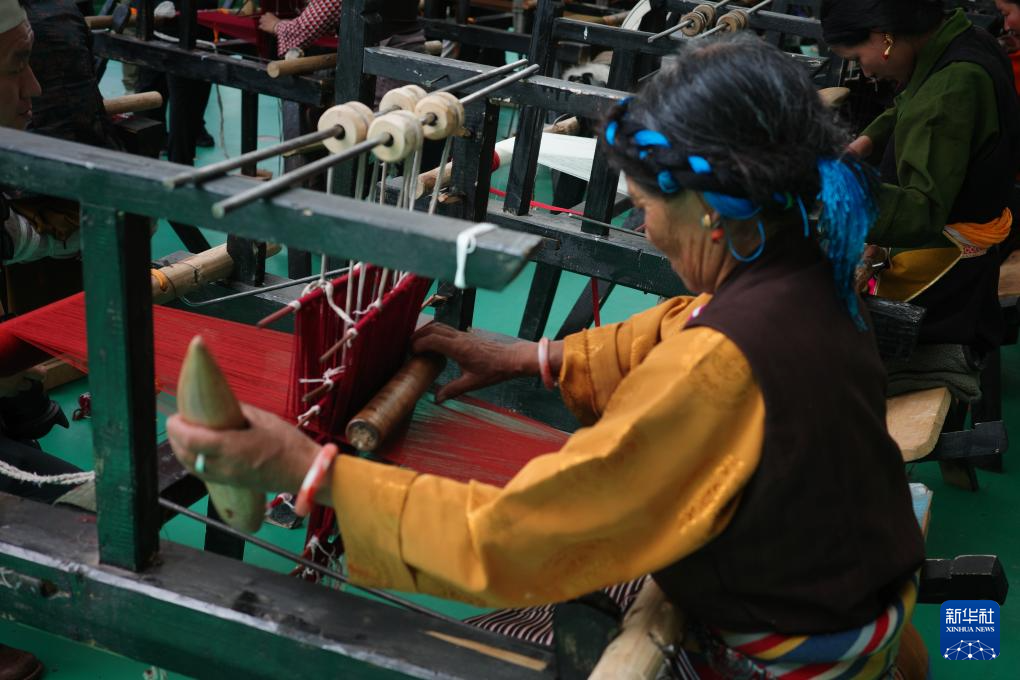 西藏日喀則市仁布縣特色產(chǎn)業(yè)孵化園,亞德細褐合作社紡織工人在紡織