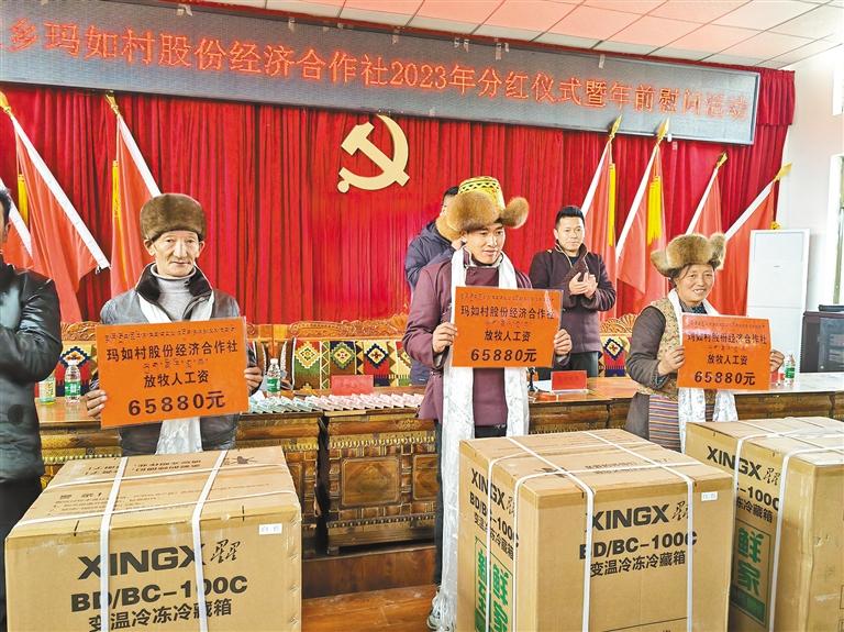 圖為瑪如村舉辦產(chǎn)業(yè)分紅和工資發(fā)放儀式現(xiàn)場。記者 丹增平措 攝