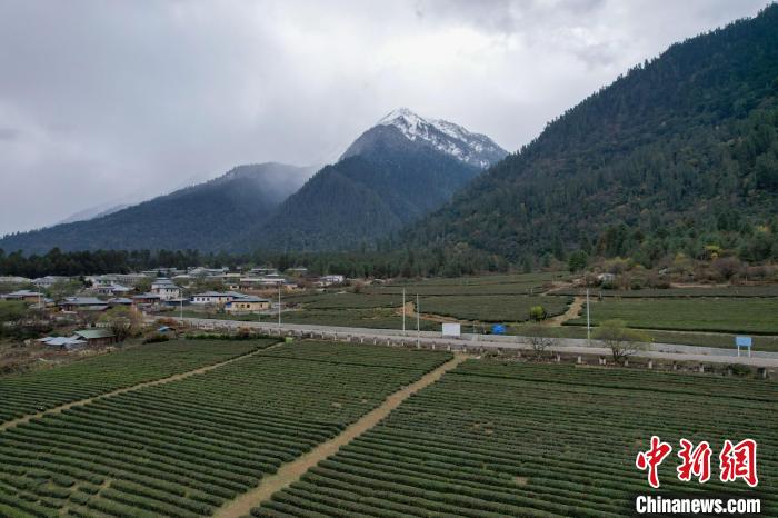 12月13日,西藏林芝波密縣易貢茶場雪山、茶田風(fēng)光。(無人機(jī)畫面)中新社記者 江飛波 攝