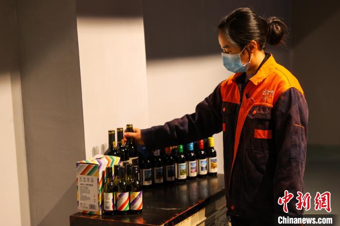 芒康縣在種植葡萄方面有著悠久的歷史,因干熱河谷氣候優(yōu)勢明顯,紫外線強(qiáng)、光線充足,適宜大面積栽種無公害綠色釀酒葡萄。圖為工作人員檢查瓶儲區(qū)葡萄酒狀態(tài)。中新社記者 薛蒂 攝