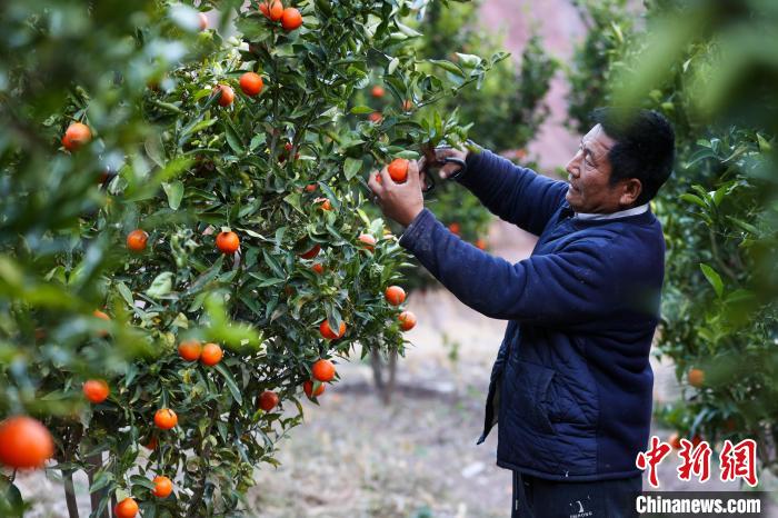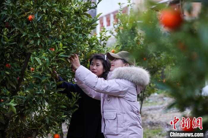 圖為游客在果園內(nèi)采摘康巴蜜橘。中新社記者 薛蒂 攝