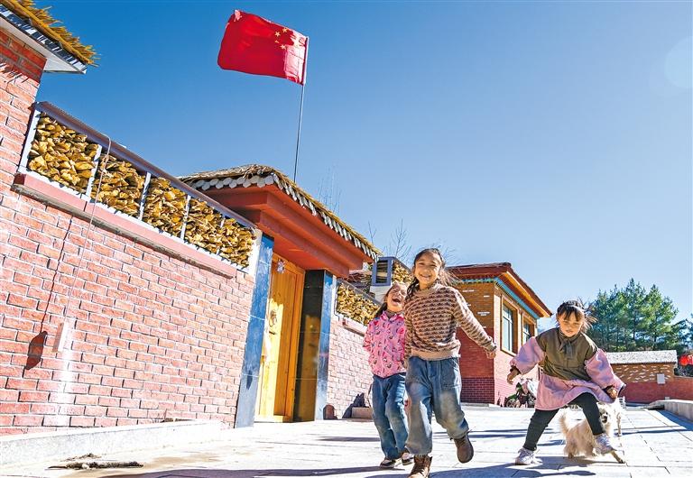 達(dá)曼新村的孩子們在玩耍。新華社記者 丁增尼達(dá) 攝